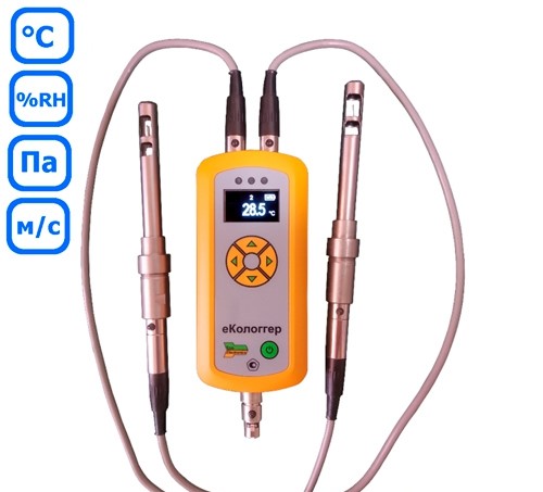 Двухканальные термометры-гигрометры-барометры-анемометры еКологгер (ТHPV) с двумя щупами (модели еКологгер 41 (ТНРV+T), еКологгер 42 (ТНРV+TH), еКологгер 43 (ТНРV+THP) и еКологгер 44 (ТНРV+THPV)) очень удобно применять в задачах, когда требуется одновременное измерение параметров микроклимата сразу в двух точках. Например, при аттестации рабочих мест (оценке условий труда) необходимо контролировать температуру и скорость движения воздуха одновременно на уровне стоп человека (обычно на высоте 0,1 м от пола) и на уровне плеч-шеи-головы (обычно на высоте 1 м от пола для сидящего и 1,5 м для стоящего человека). Также двухканальные модели приборов еКологгер (ТHPV) можно применять, когда нужно одновременно контролировать параметры микроклимата снаружи и внутри какого-то помещения, установки или объекта.